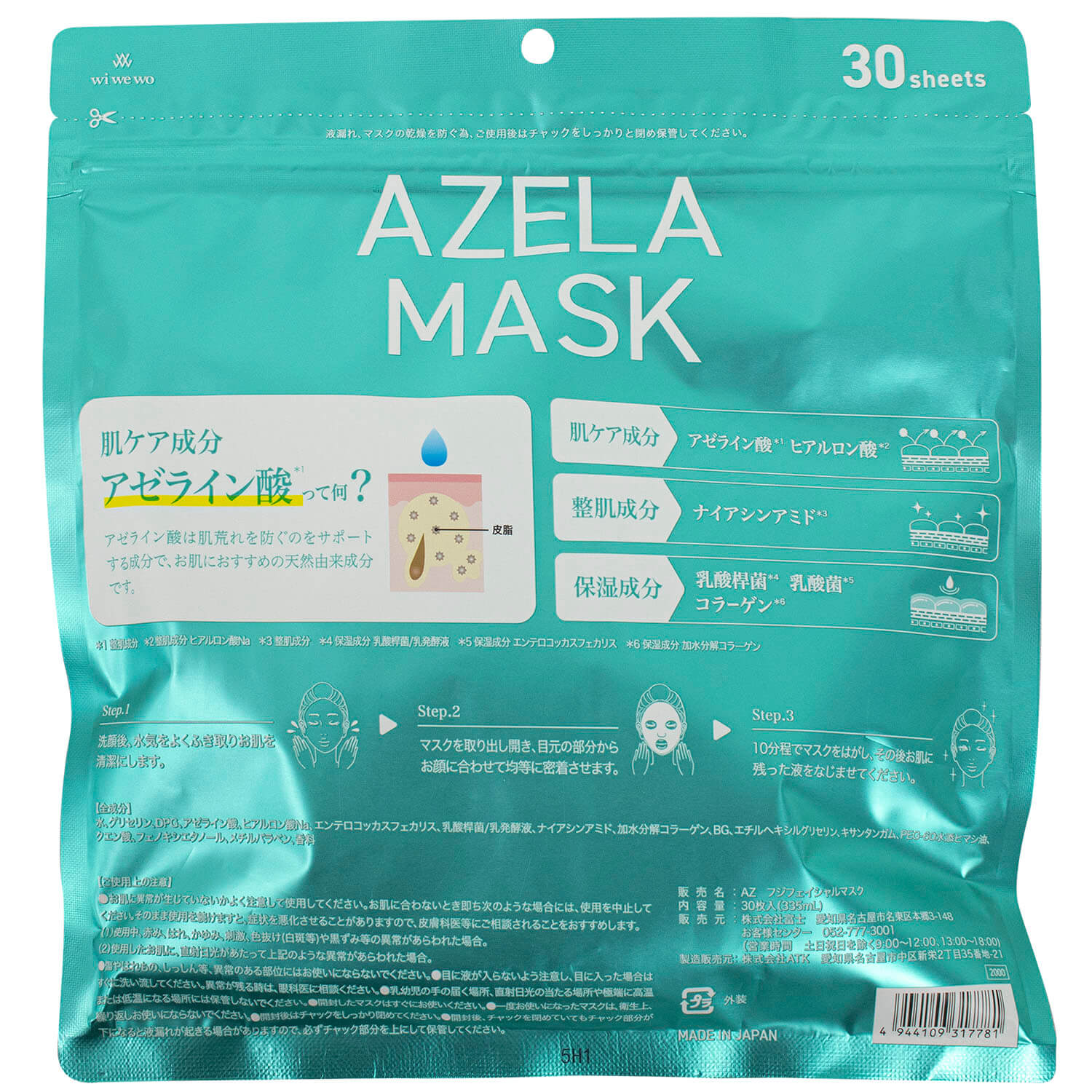 今日ご紹介するのは、「アゼラフェイスマスク 30枚入」です。