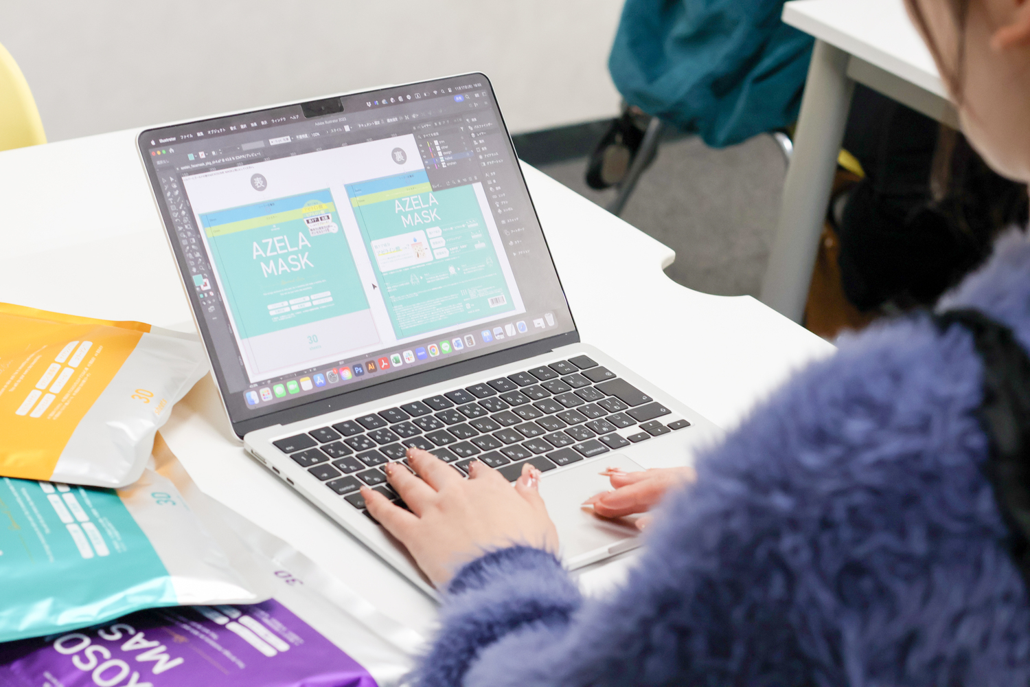 デスクで黙々と、商品の魅力をデザインに落とし込んでいく風景。