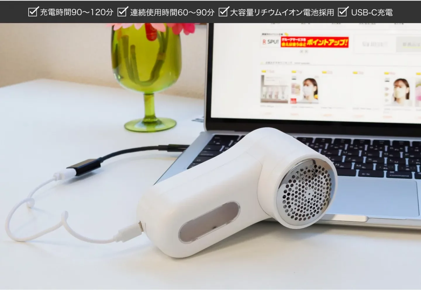 USB充電式を採用しました。